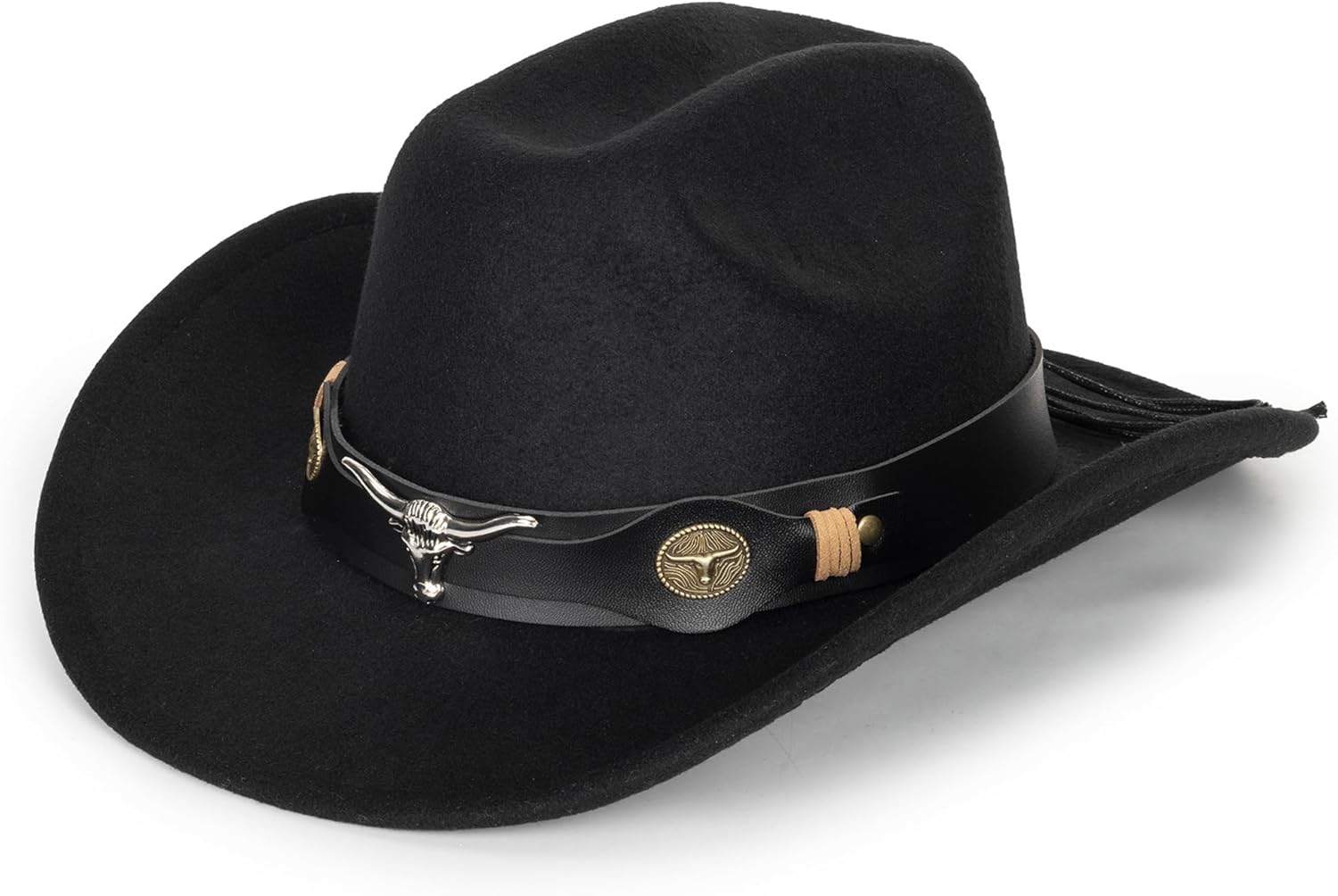 Black Cowboy Cowgirl Hat for Women Men Western Style Wide Brim Felt Fedora Panama Hat with Detachable Belt Buckle