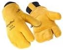 RefrigiWear 3-Finger Heavy Duty Insulated Leather Mitt Work Glove with Double Cuff