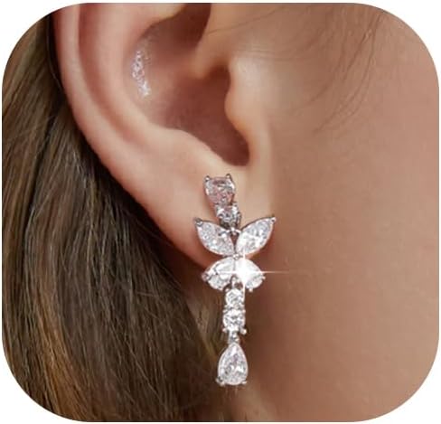 Clip on Earrings for Women 925 Sterling Silver Plated Cubic Zirconia Long Tassel Dangle Drop Earrings Non Pierced Earrings for Women Jewelry Gifts Wedding Party