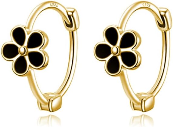Reffeer Solid 925 Sterling Silver Daisy Flower Hoop Earrings Huggie for Women Teen Girls Black Flower Hoop Earrings Cartilage Helix Earrings