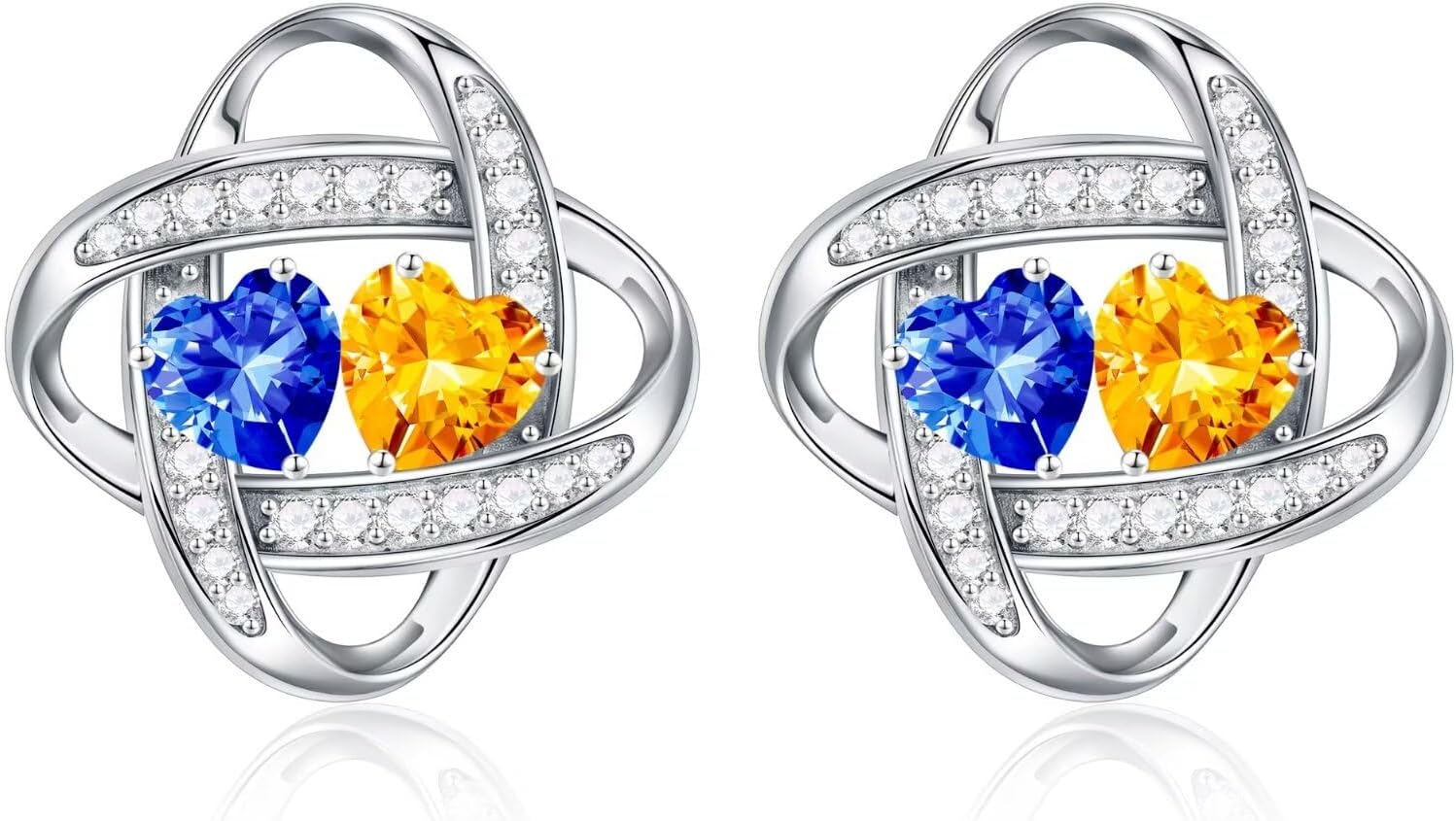 Iefil Double Birthstone Earrings for Women - 925 Sterling Silver Stud Earrings | Anniversary Birthday Gifts for Women | Jewelry Gifts for Wife Girlfriend Mom Daughter