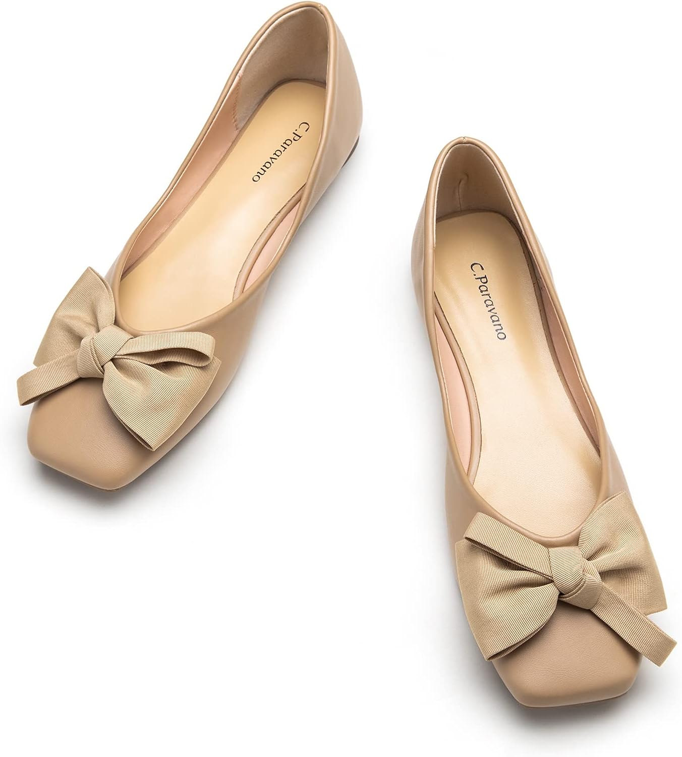 C.Paravano Flats for Women | Square Toe Shoes | Ballet Flats | Dressy Women Shoes(Size 7.5,Beige-T)