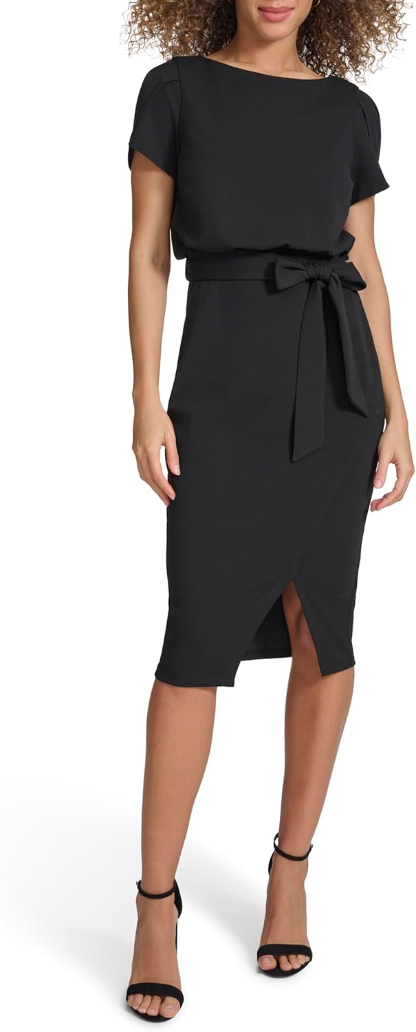 Kensie Womens Short Sleeve Tie Waist Midi Dress