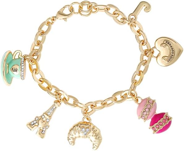 Juicy Couture Charm Bracelets for Women 7.5", Gold-Tone Chunky Bracelet with Novelty and Logo Charms