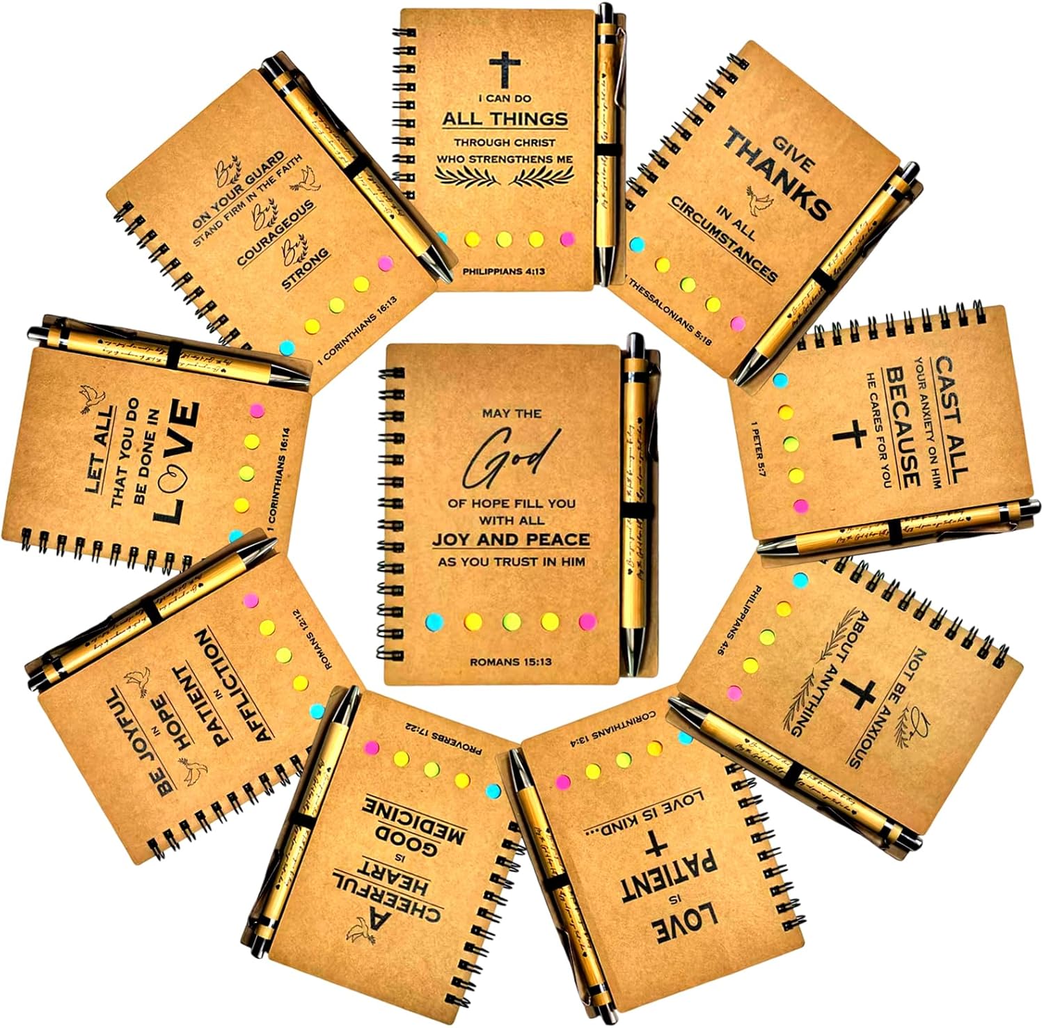 10 Sets Christian Notebooks Bulk Prayer Journals Inspirational Christian Gifts Bible Notebook with Bible Verse Pens for Women Men Church Members Bible Study Groups & Church Families