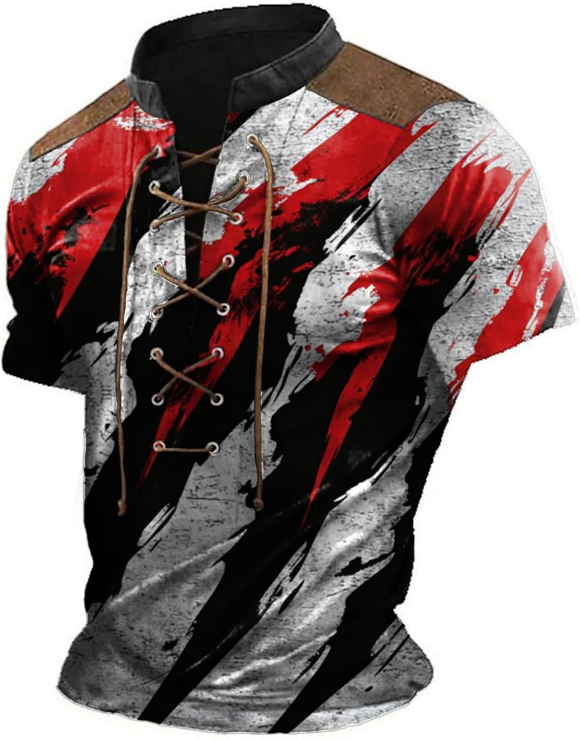 MARSVOVO Tactical Polo Shirts for Men Lace Up Patchwork Neck Totem Camo Vintage Short Sleeve Workout Henley Shirt