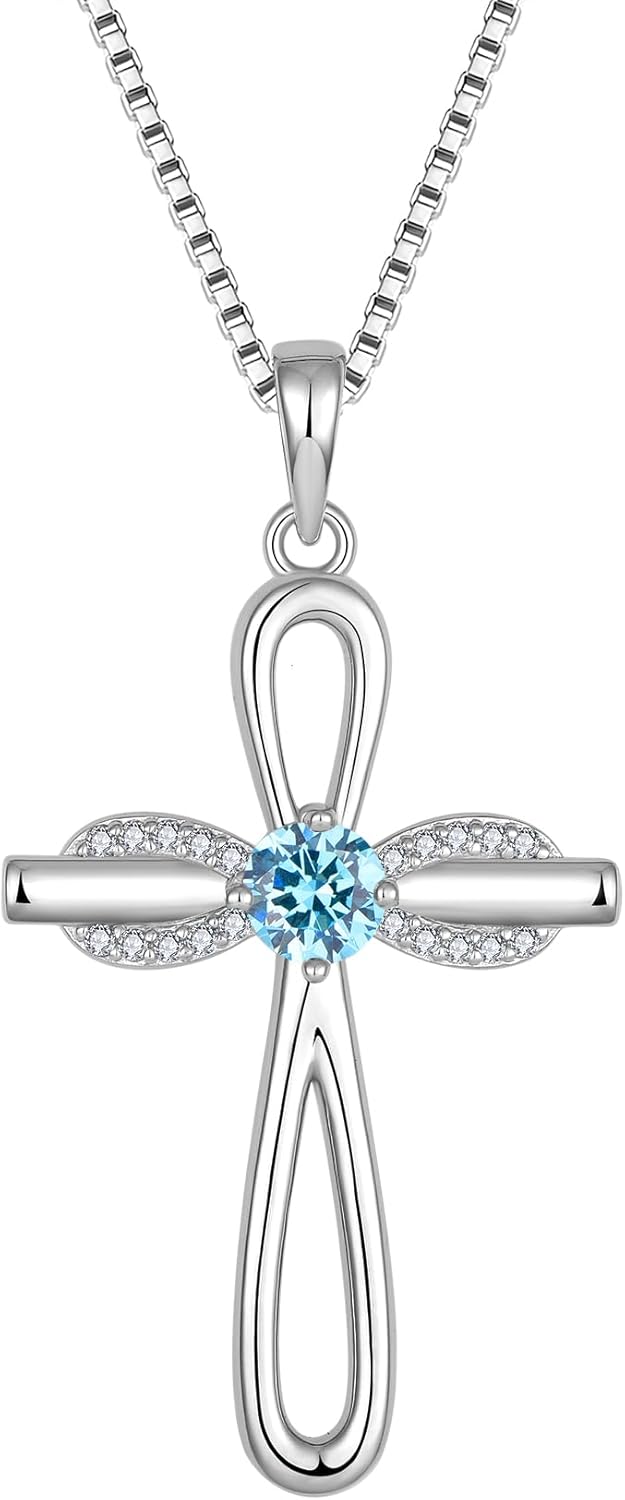 FJ Infinity Cross Necklace 925 Sterling Silver Religious Pendant Birthstone Jewelry Gifts for Women