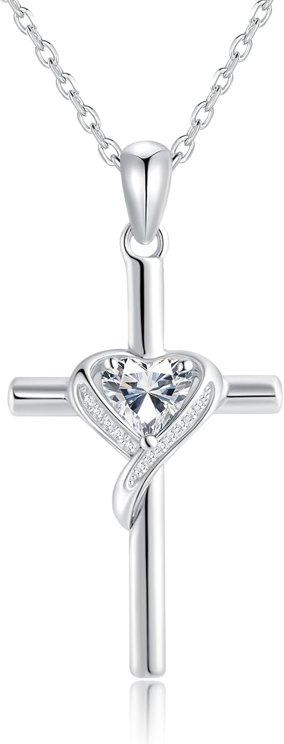 Cross Necklace for Women 925 Sterling Silver Birthstone Cross Pendant Necklace Cross Jewelry Gifts for Women Mother Wife on Birthday Mother's Day