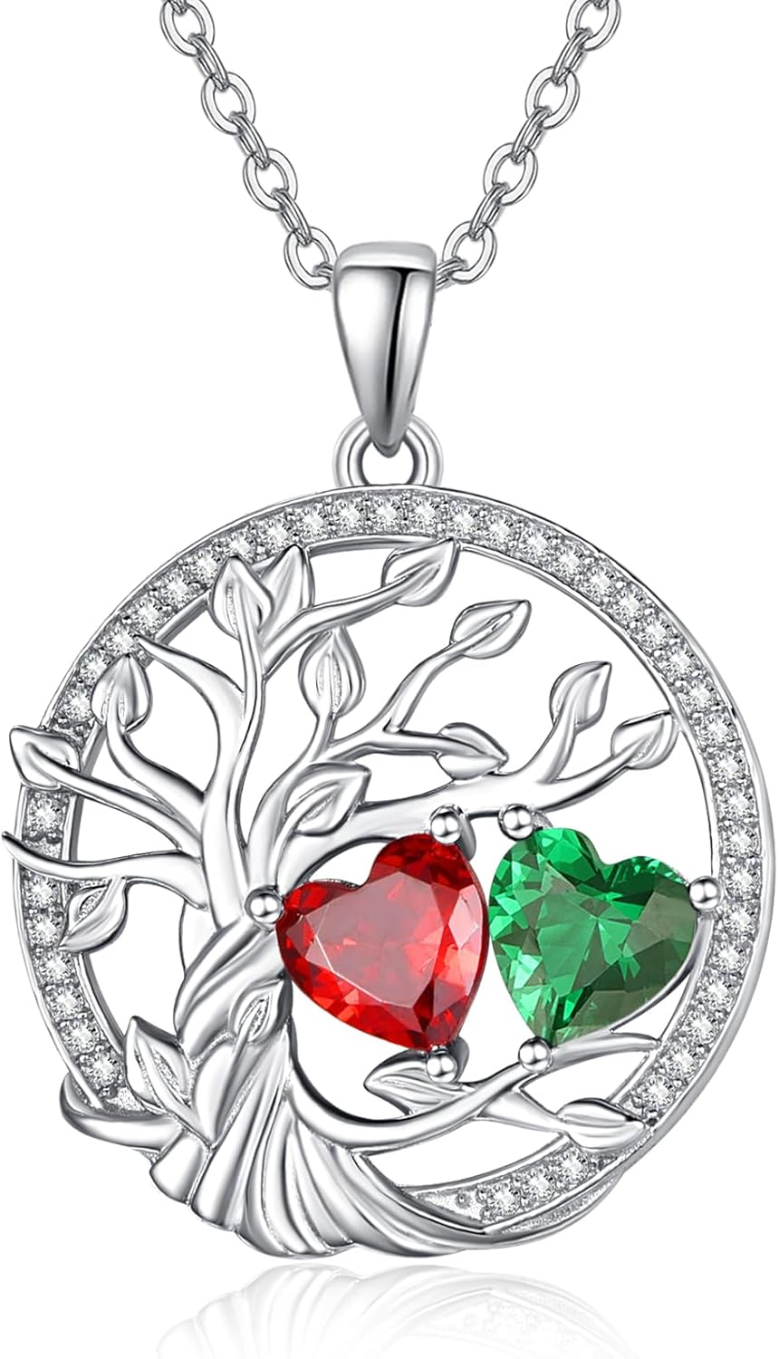 AENEAS Tree of Life Necklace with 2 Birthstone Sterling Silver Tree of Life Pendant Jewelry Gifts for Women