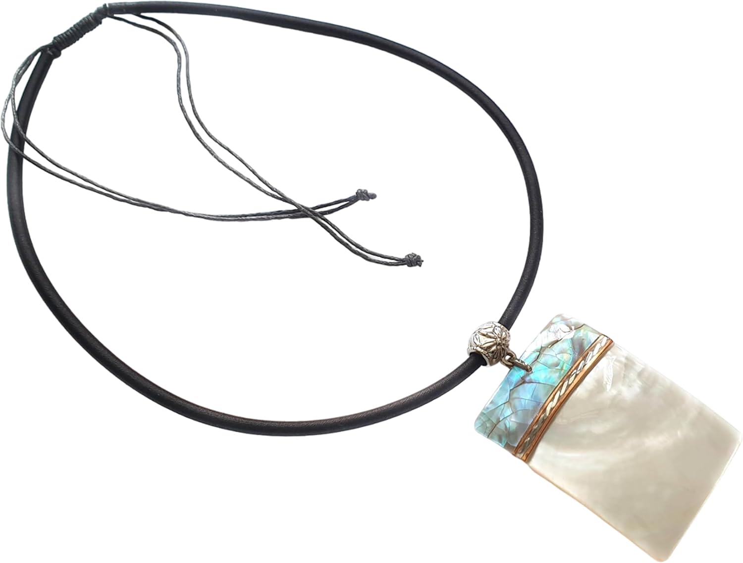 Natural Two Tones Mother of Pearl Shells Pendant Beads Cord Necklace Handmade Women Jewelry CA291
