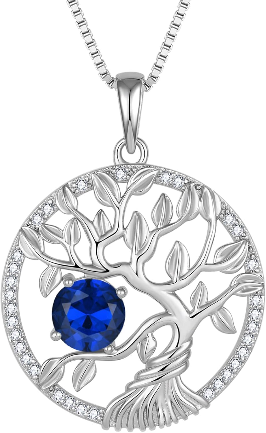 Tree of Life Necklace 925 Sterling Silver Family Tree Pendant Birthstone Jewelry Gifts for Women