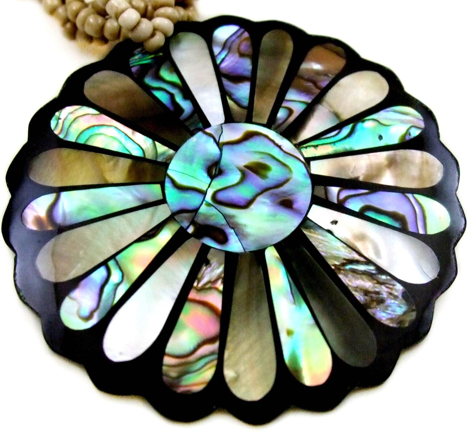 Natural Paua Abalone Shell, Mother of Pearl Pendant 19 Inch Beads Necklace Handmade Women Jewelry GA306