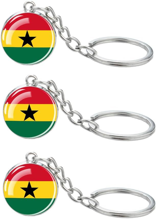 3 Pcs Ghana Flag Key Chain,Cool Keychain for Car Keys, Stainless Steel Keyrings & Keychains,Used for Home Decoration, Jewelry Hanging Decorations.