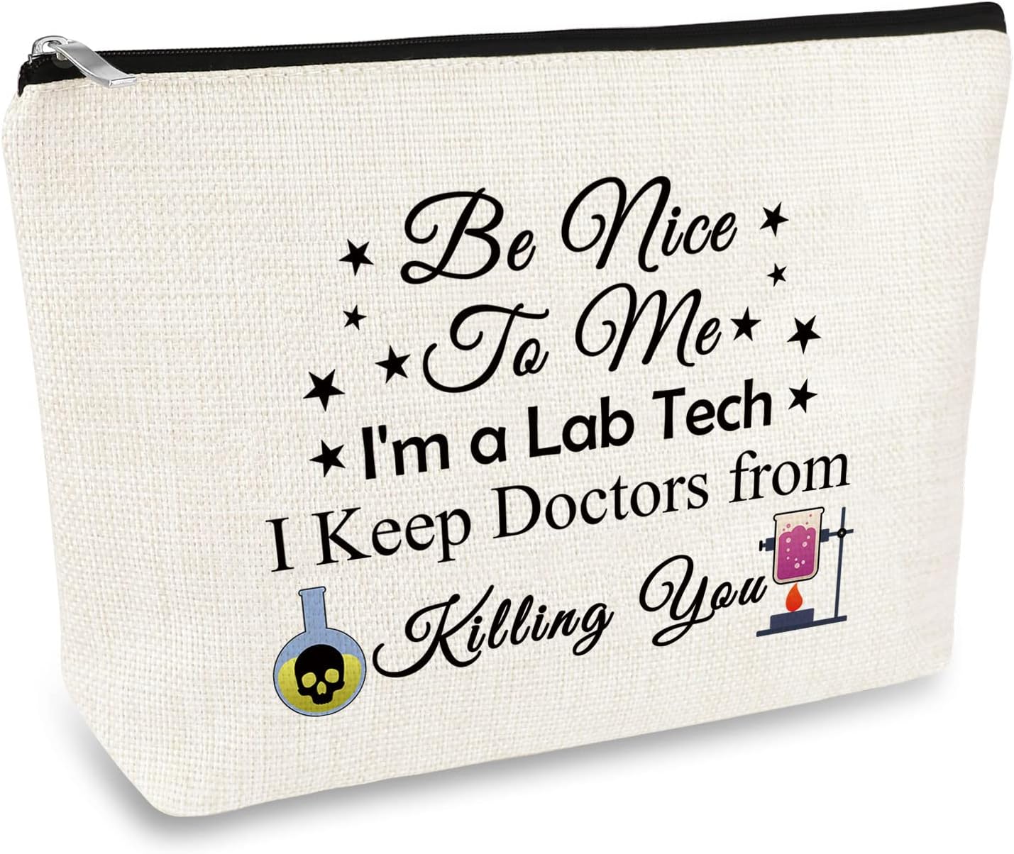 - Lab Tech Gift Idea:'Be nice to me.I'm a lab tech I keep doctors from killing you.'This is the perfect laboratory humor supplies for hospital lab week!Great makeup bag for lab techs to show them how much you appreciates them.