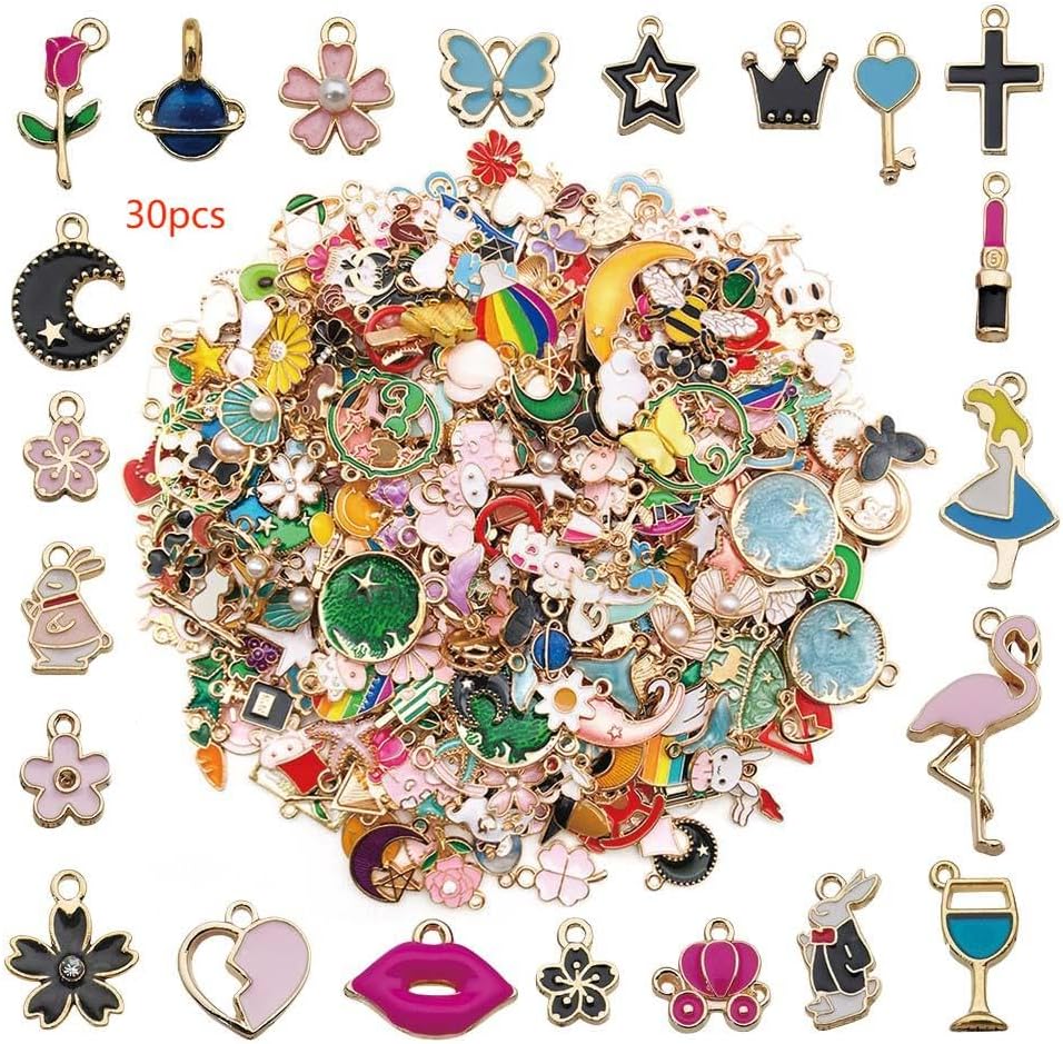 Youdiyla 60pcs Random alloy enamel Pendant Jewelry Making DIY Keychain Earrings Pendant Various Design Charms for Jewelry Making Bracelets Necklace (SN465)