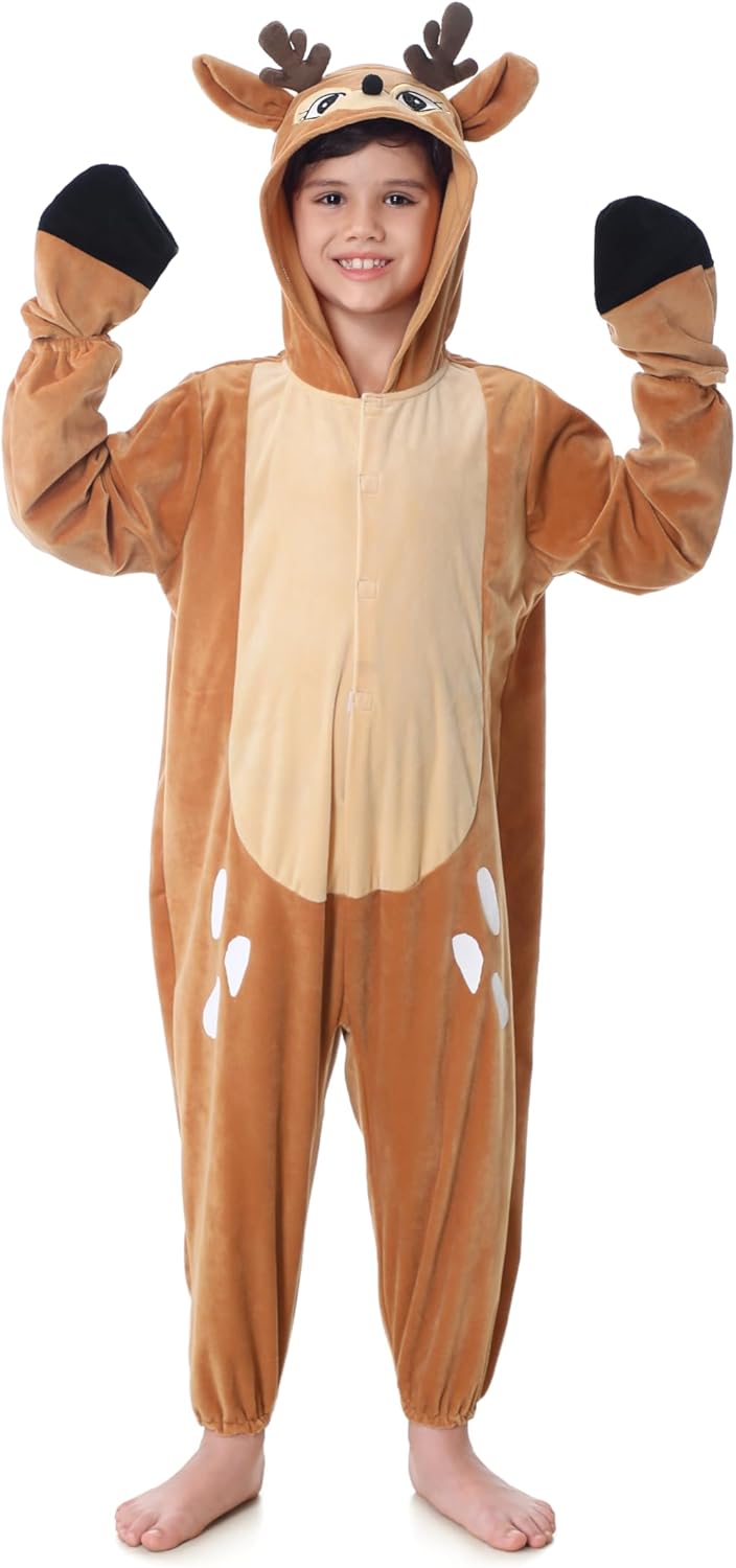 Christmas Reindeer Costume for Kids, Deer Animal One-Piece Cosplay with Gloves Halloween Birthday Party