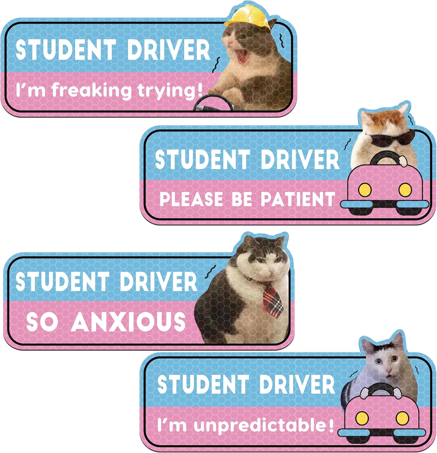 CNhoqc New Student Driver Magnet - 4pcs Cute Shivering Cat Please Be Patient Student Novice Driver Magnetic Reflective Bumper Sticker Safety Attention Signs Reusable Movable Car Magnet Safety Warning