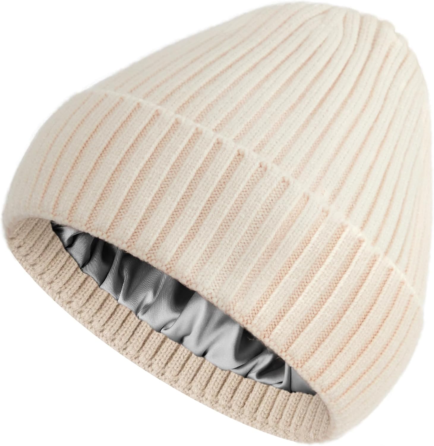 vidsel Satin Lined Wool Beanie Hat for Women Men Winter Cold, Warm Knit Fashion Cuffed Beanie Skull Cap Watch Cap