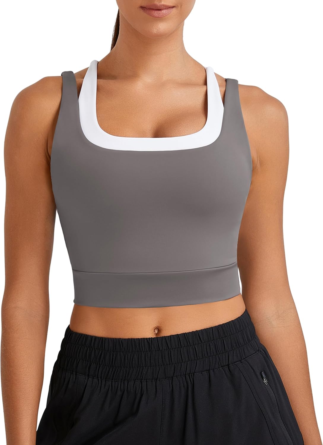 BMJL Womens Built in Bra Tank Tops Black Workout Scoop Neck Racerback Cropped Tops Camisole with Padded