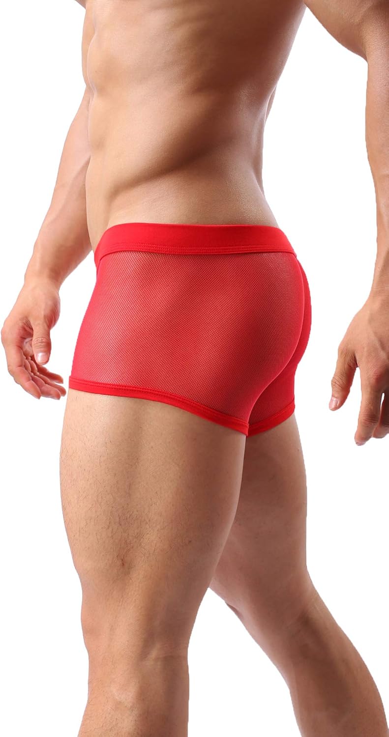 Mens Sexy Underwear Breathable Mesh Boxer Briefs See Through Hollow Lingerie