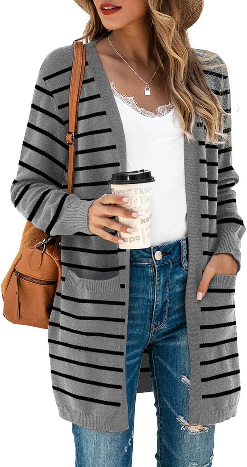 TASAMO Women's Kimono Cardigan Long Sleeve Open Front Casual Knit Sweaters Coat Oversized Soft Outwear with Pockets