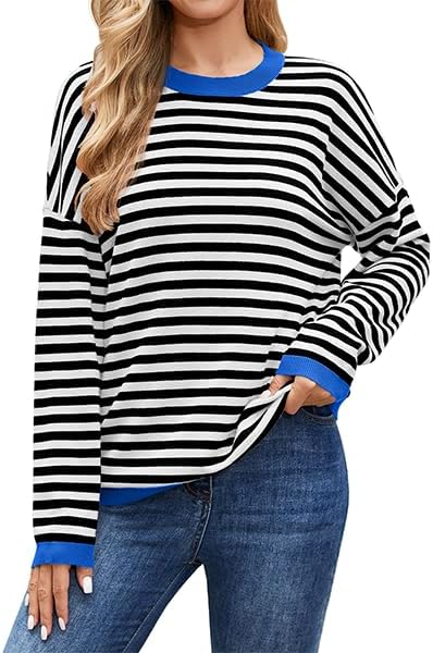 WANGZHI Womens Sweater Casual Knitted Striped Sweatshirt Long Sleeve Lightweight Cute Pullover Tops Trendy 2025 Fall