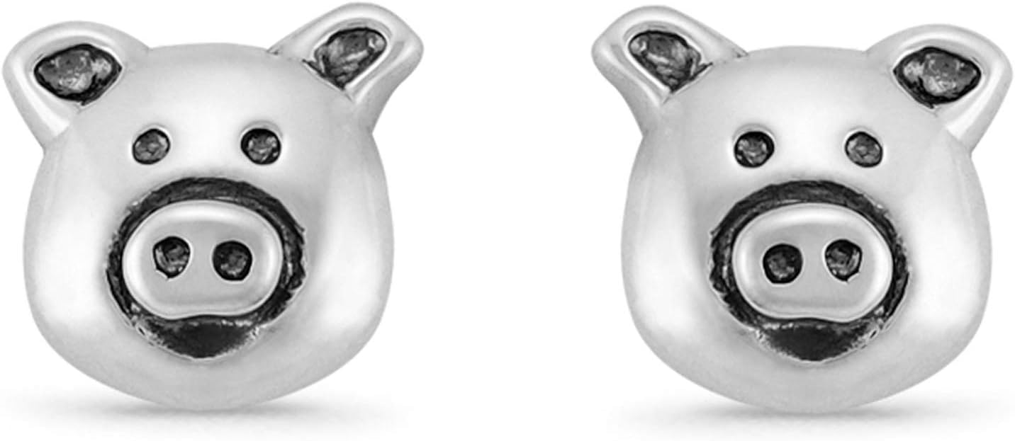 Boma Jewelry Sterling Silver Pig Farm Animal Stud Earrings