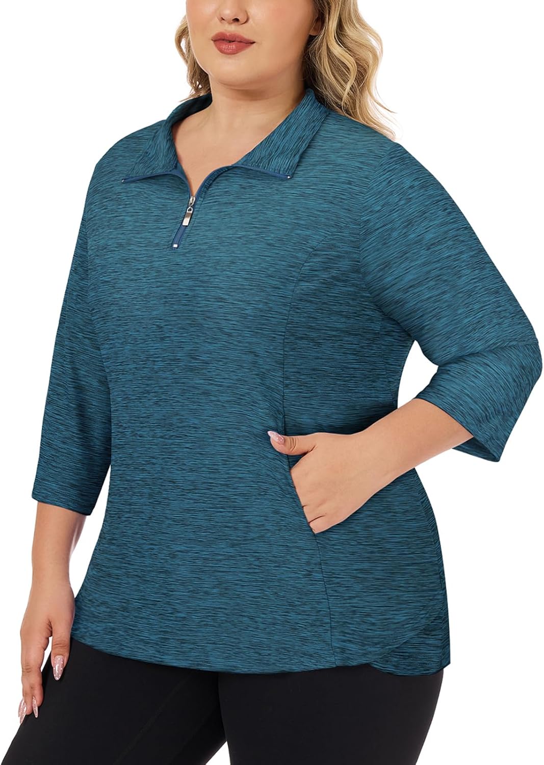 Tanst Sky Plus Size Womens Golf Polo Shirt 3/4 Sleeve Zip Up Workout Tops with Pockets