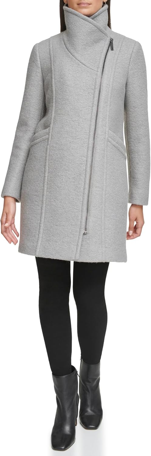 Kenneth Cole Women's Asymmetrical Zip Wool Boucle Coat