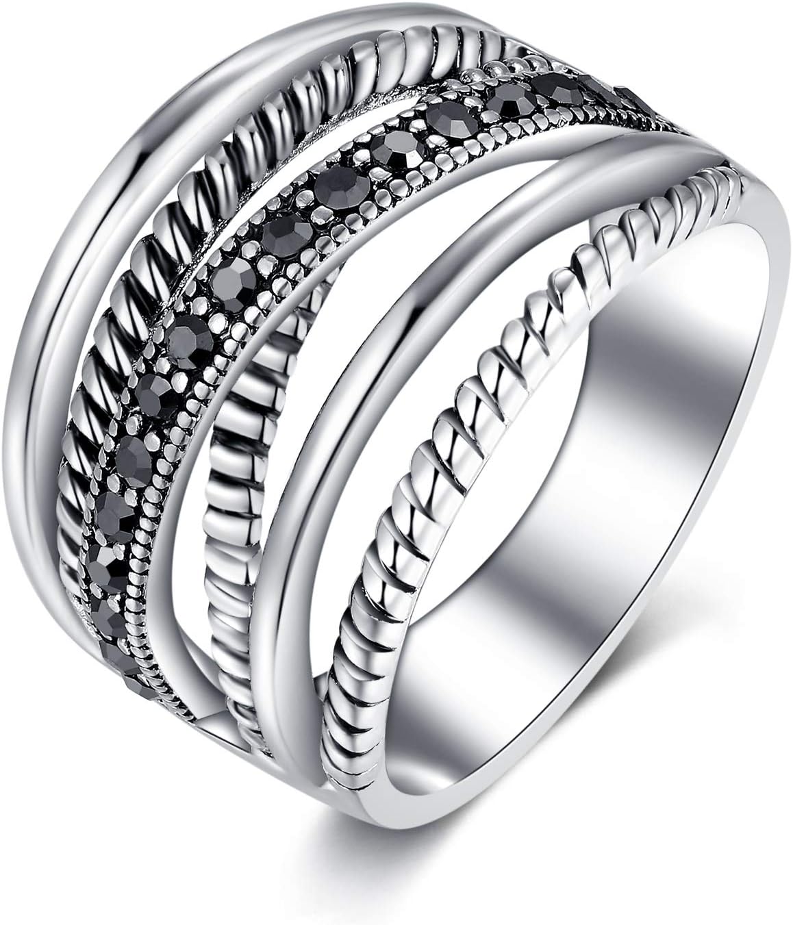 Oxidized Silver Marcasites Cable Crossover Statement Rings Costume Rings for Women