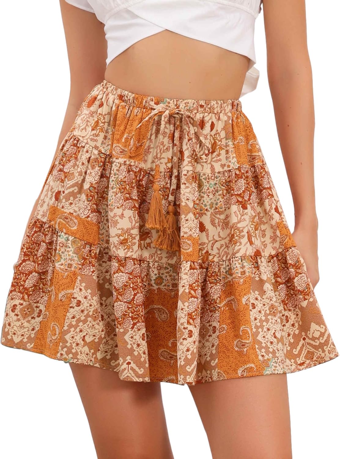 Allegra K Boho Floral Mini Skirt for Women Casual Summer High Waist Drawstring Flowy Skirts