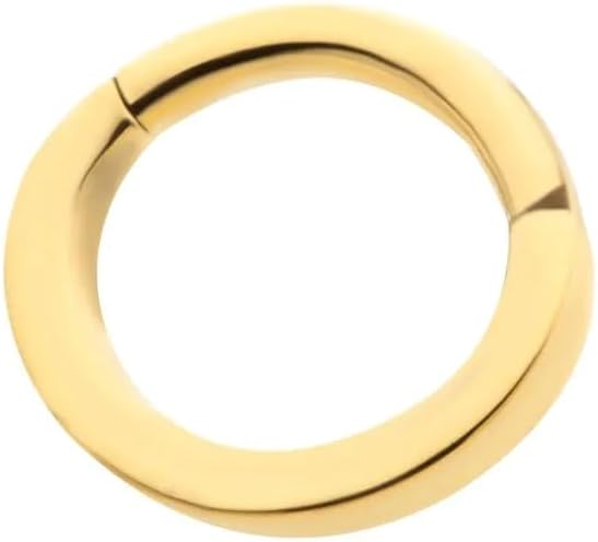 Pierced Owl 24KT Gold PVD ASTM F-136 Implant Grade Titanium Oval Shaped Hinged Segment Clicker Ring