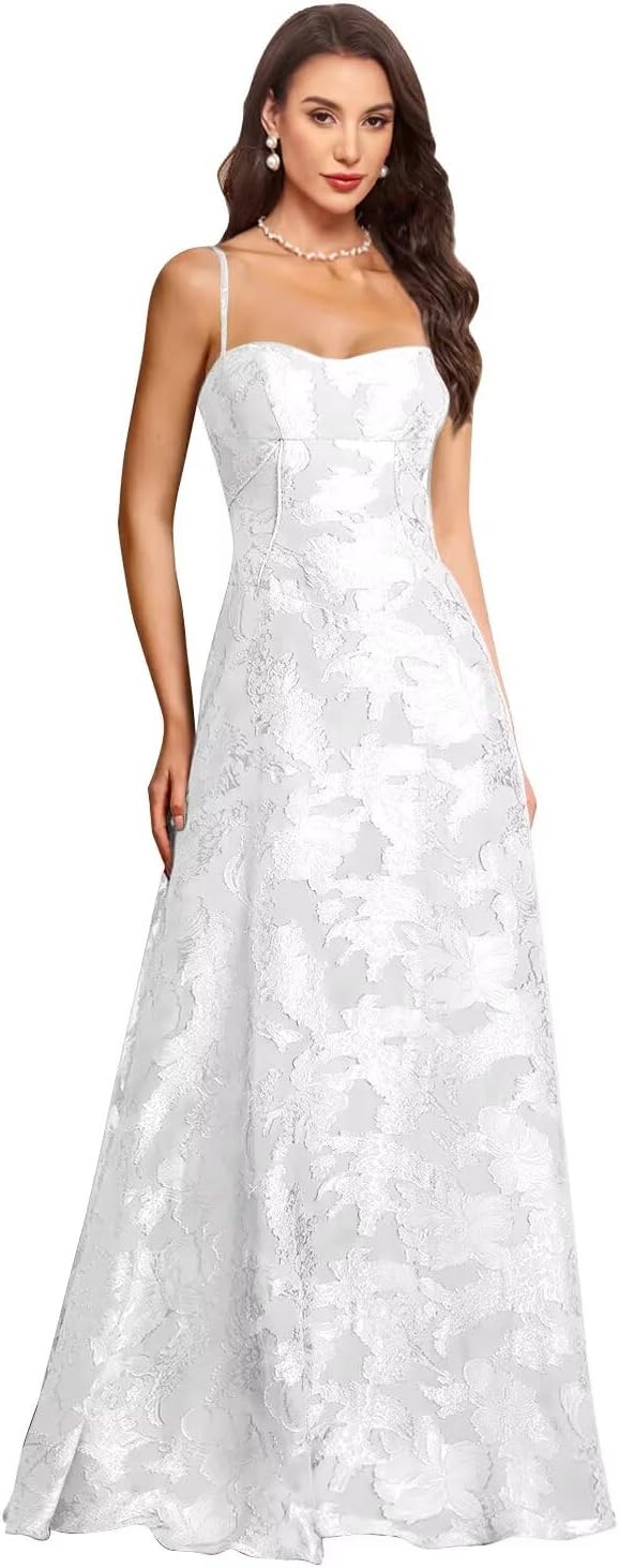 Jacquard Floral Bridesmaid Dresses for Women Halter V Neck A Line Sleeveless Long Formal Party Evening Gowns