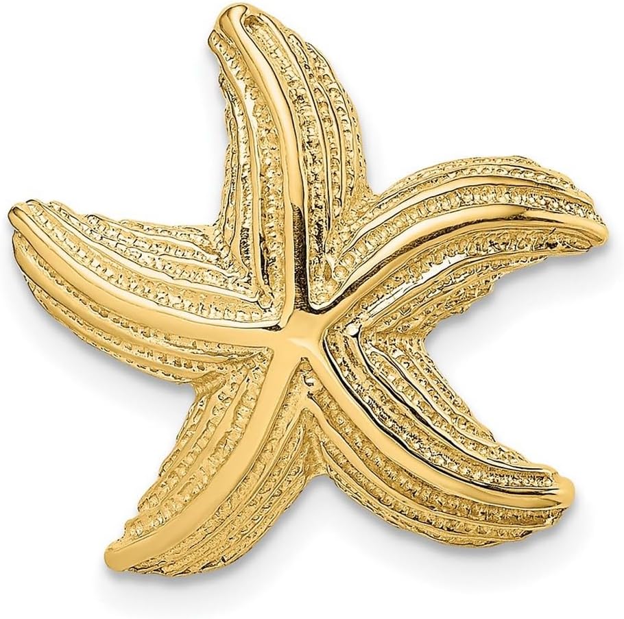 JewelryWeb 14k Gold Sea shell Nautical Starfish Slide High Polish and Textured 19x20.1mm Wide 8.7mm Thick Pendant Necklace for Women