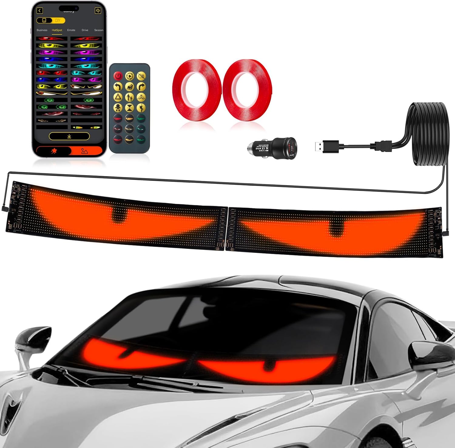 Eyes Led Lights for Cars 2PCS - 14.72x3.62In Customizable Display, USB Powered, App/Remote Control, Synced Dual Screen Led Windshield Eyes for Cars/SUVs/Medium Trucks