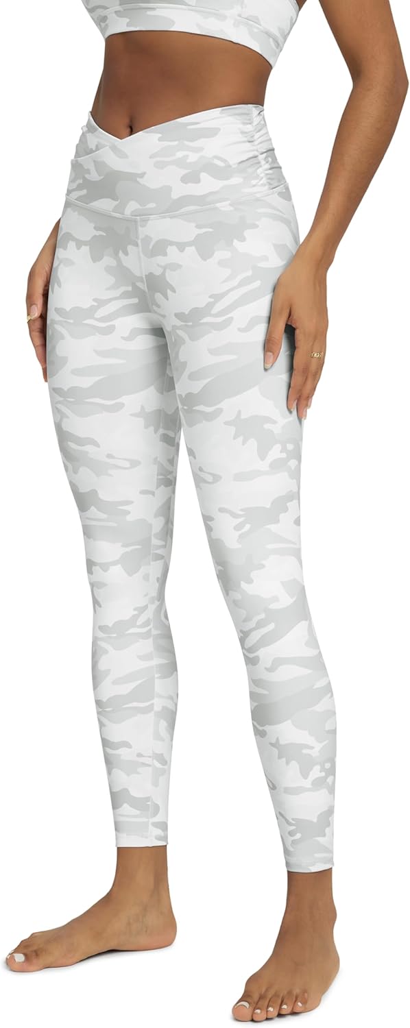 ODODOS Women's Cross Waist Yoga Leggings with Inner Pocket, 23"/25"/28" Gathered Crossover Workout Yoga Pants