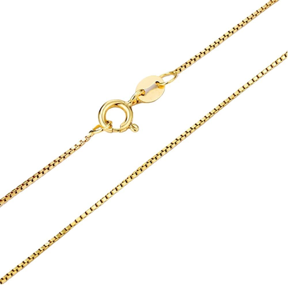 14K Yellow Gold Box Chain Necklace for Women and Men, Genuine Gold (0.6mm、1mm - Lengths from 16 to 30 Inches)