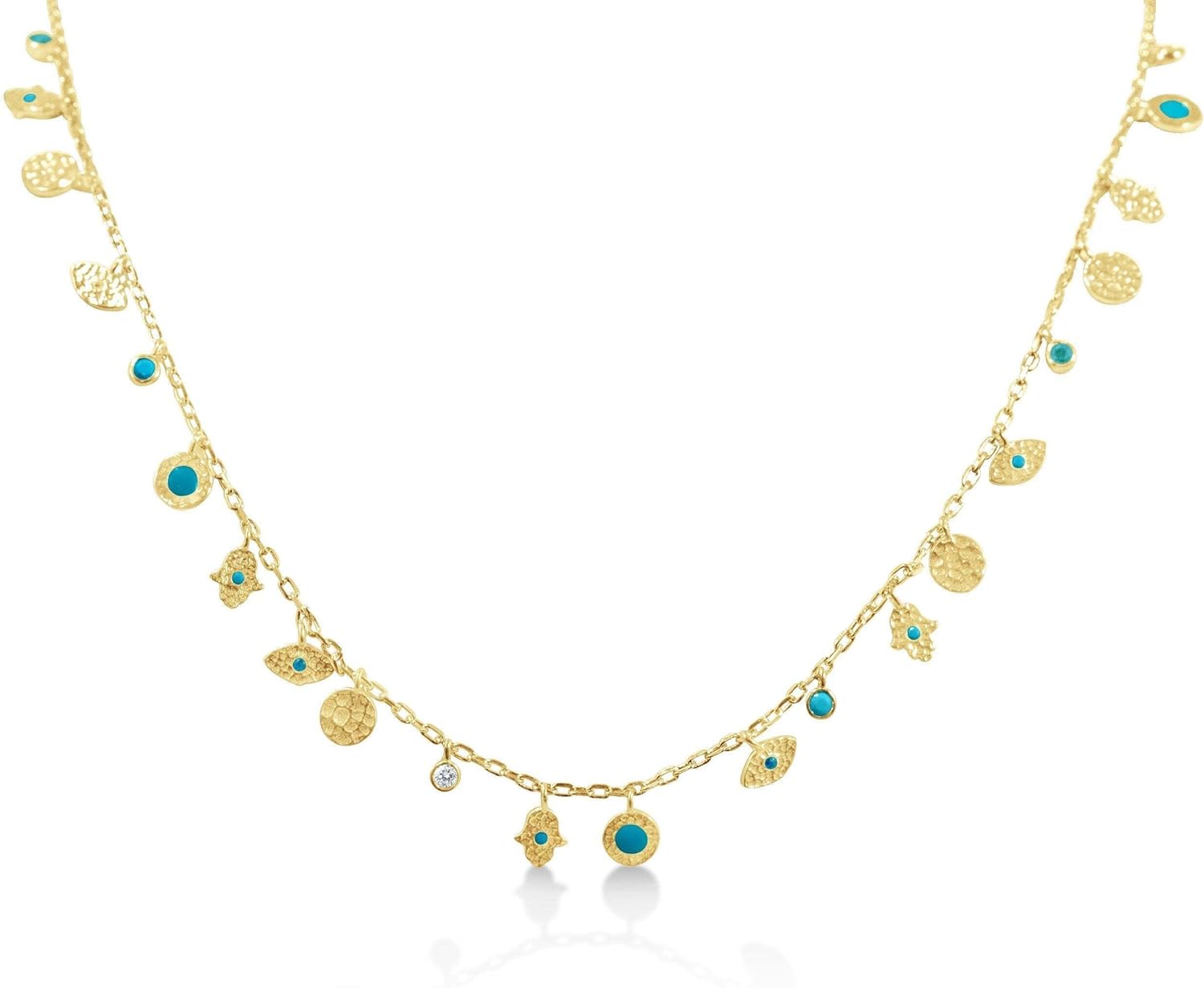 Alef Bet by Paula Amulet Evil Eye and Hamsa Hand Necklace