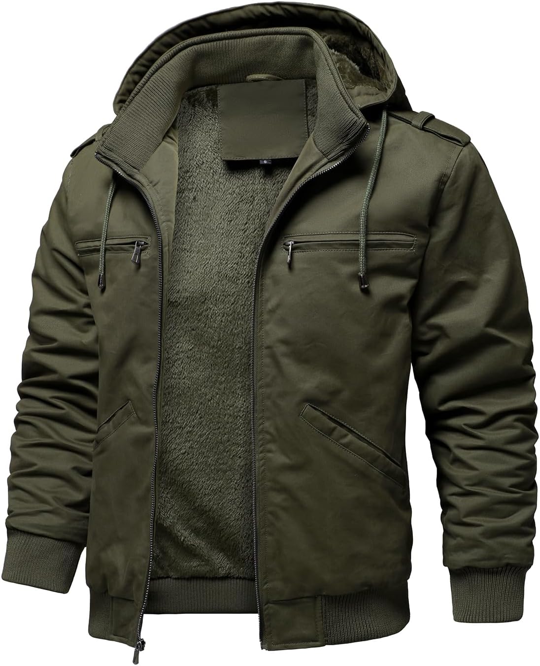 HOOD CREW Men’s Winter Jackets With Multi Pockets Cotton Thick Warm Fleece Lined Coat Hooded Work Cargo Jackets for Men