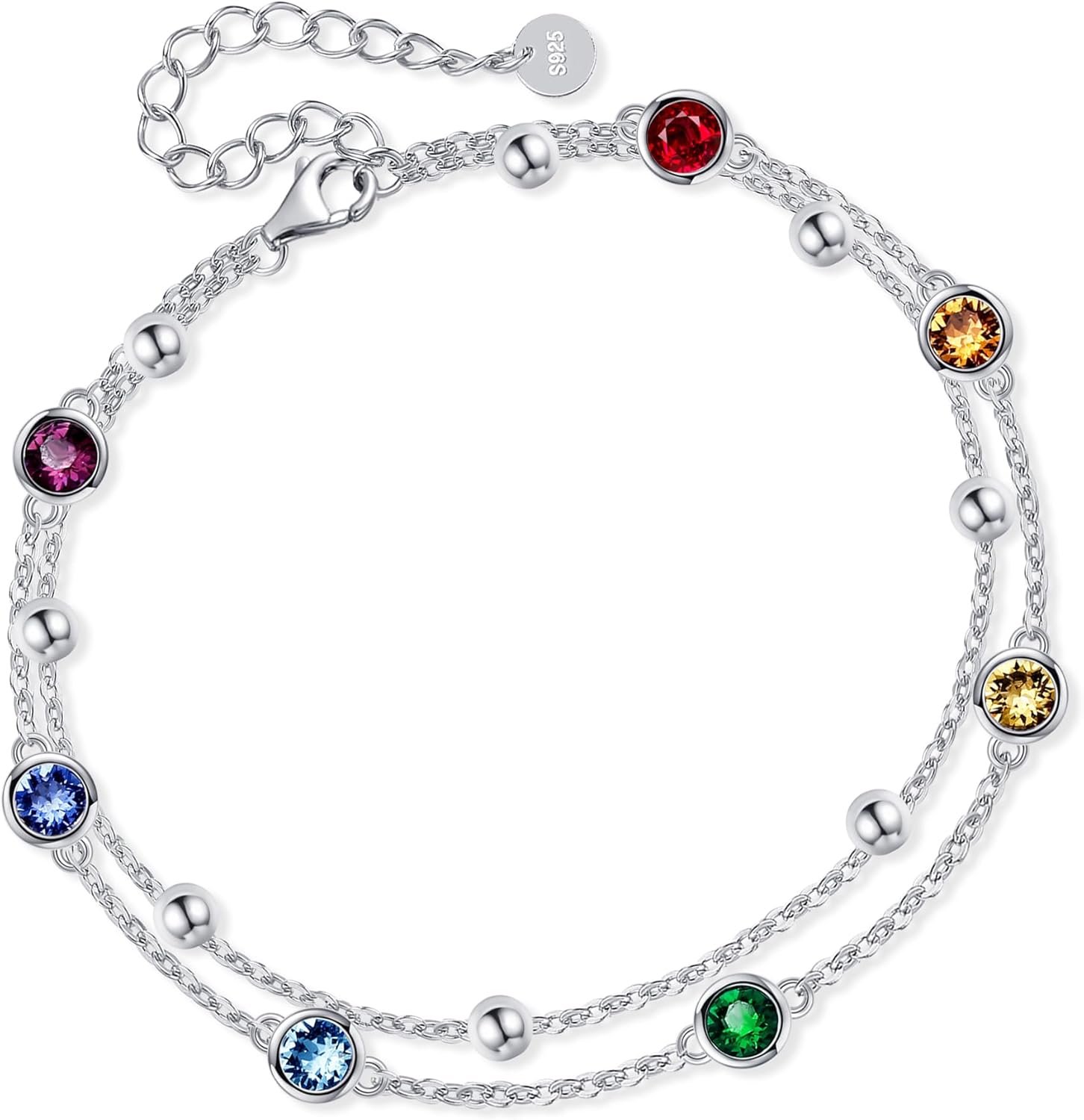 POPLYKE 925 Sterling Silver Crystal Chakra Bracelet Layered Chain Bracelet for Women Crystal Chakra Jewelry