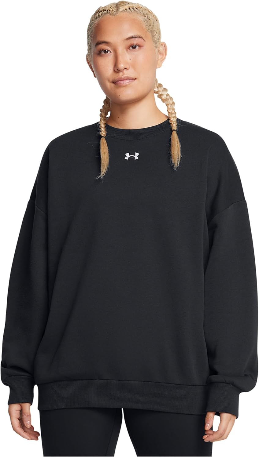 Under Armour Women Rival Fleece Oversized Crew, (001) Black / / White, Small