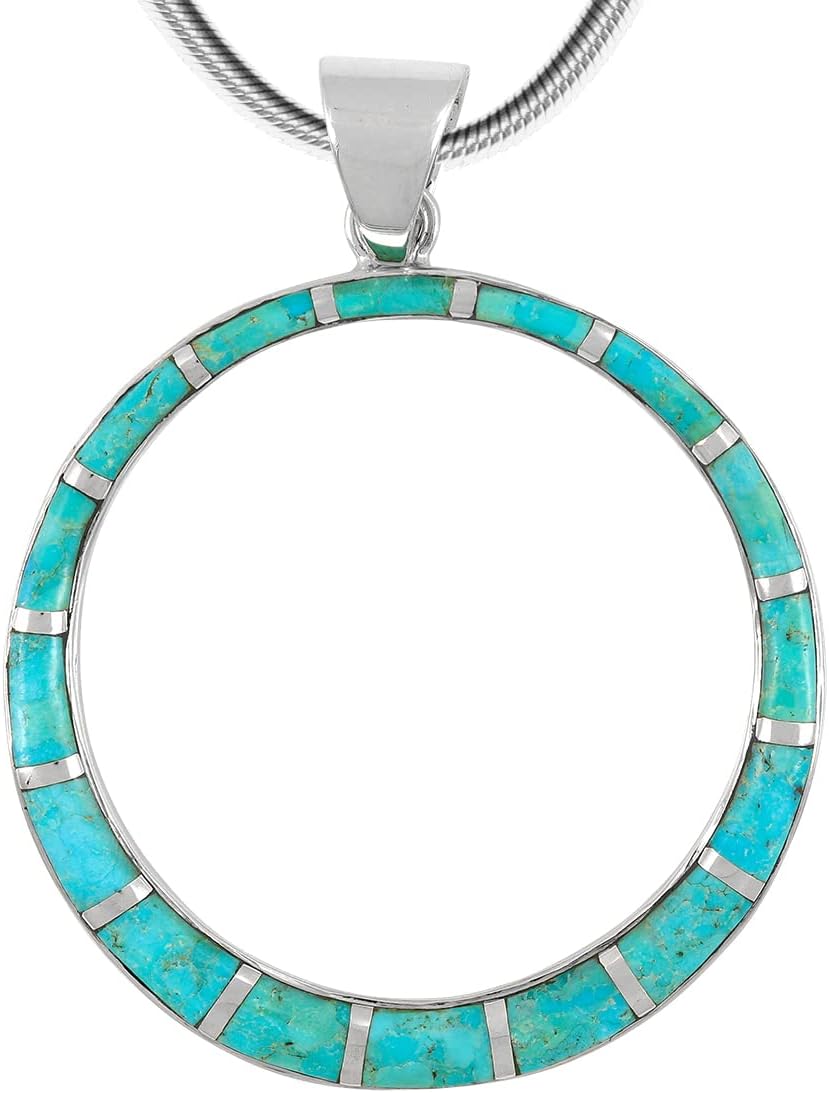 Turquoise Network Gemstone Pendant Necklace in 925 Sterling Silver Genuine Gemstones & Gemstones (24" Length)