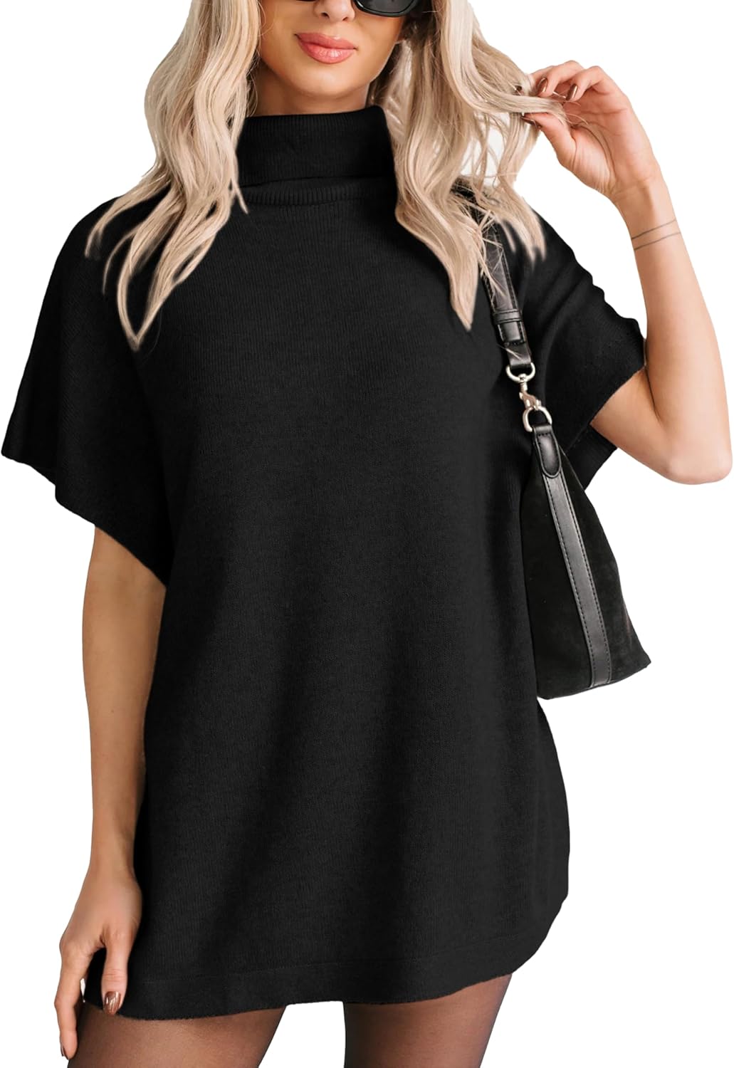 Yidarer 2026 Womens Turtleneck Knit Sweaters Short Batwing Sleeves Relaxed Fit Casual Pullover Tops