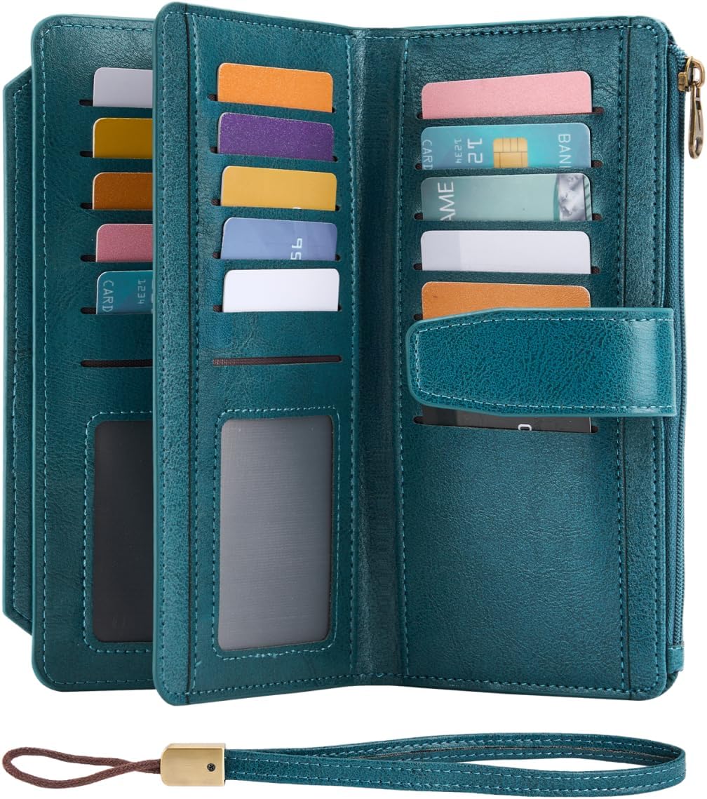 - 【Extra Large Capacity Wallet for Women】Featuring 27 card slots, 3 ID windows, 2 versatile cash compartments, and 1 zipper coin pocket, this spacious women's wallet can easily keep your credit cards, store cards, ID cards, driver's licenses, bills, cash and family photos neatly organized — all without the bulky feel of traditional large wallets.