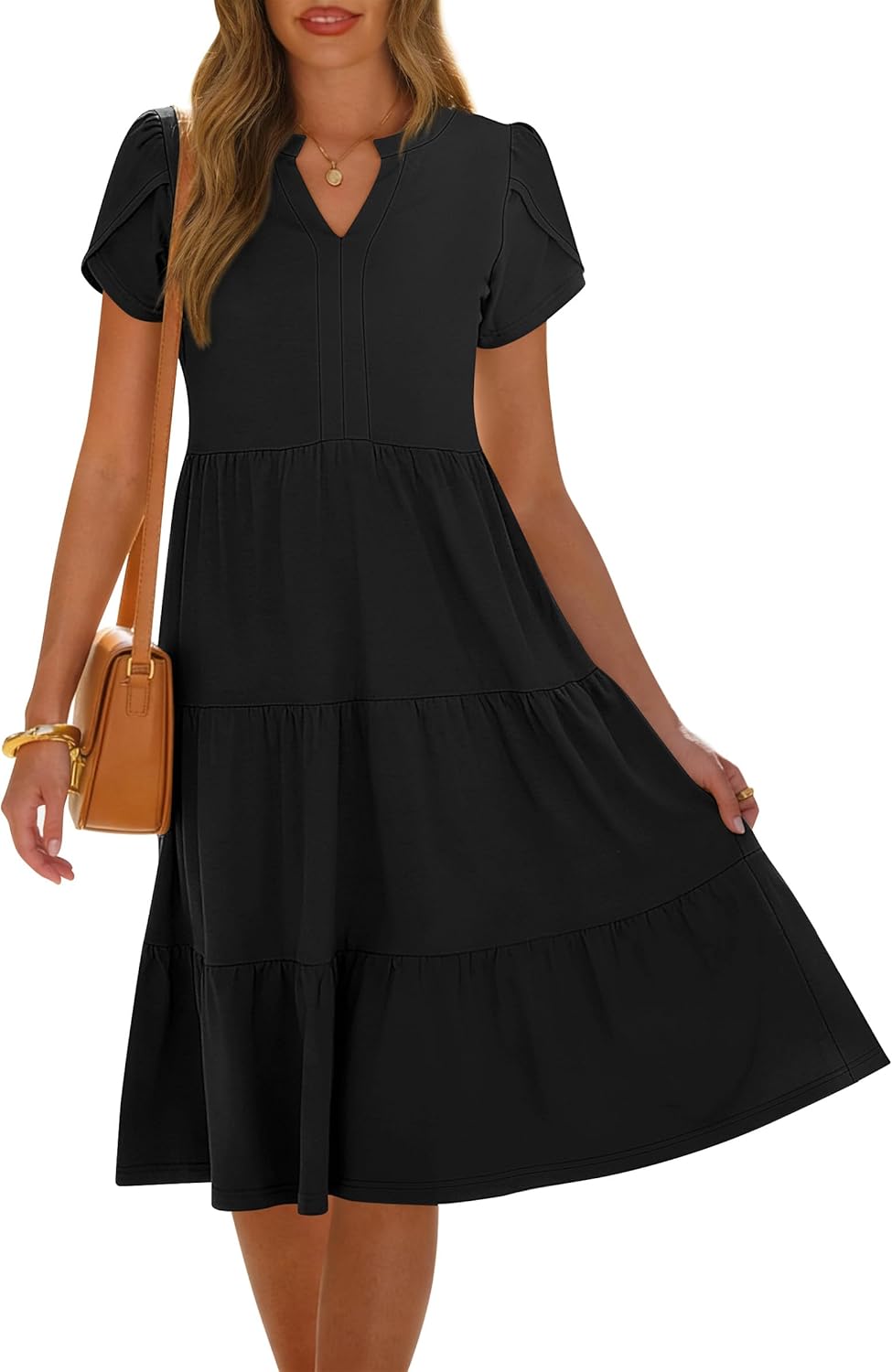 ANRABESS Womens Summer Causal Dresses V Neck Short Sleeve Midi Dress 2026 Flowy Tiered Boho Beach Sundress Vacation Outfits