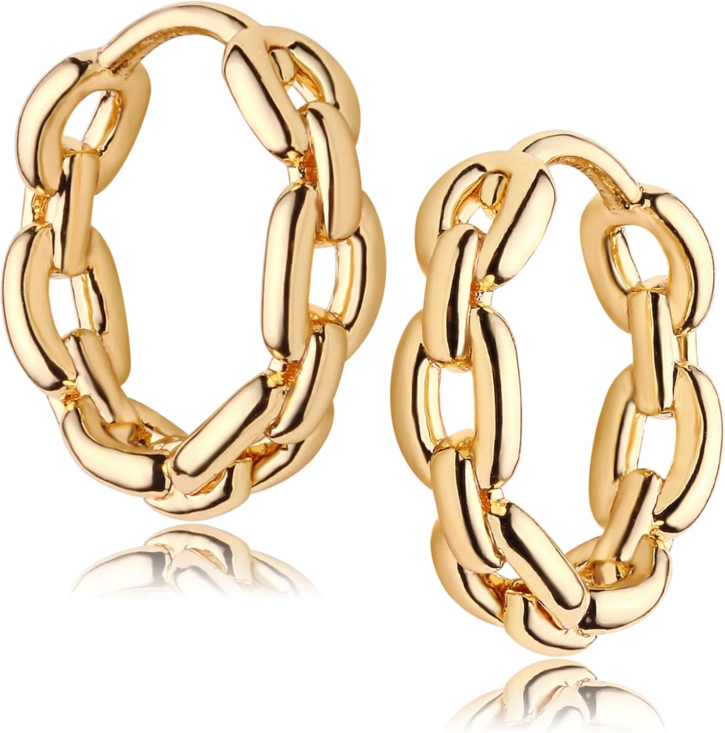 FETTERO Gold Huggie Hoop Earrings for Women Gold Plated Dainty Hypoallergenic Earrings Twist Link Hoops Simple Minimalist Earring Jewelry for Women