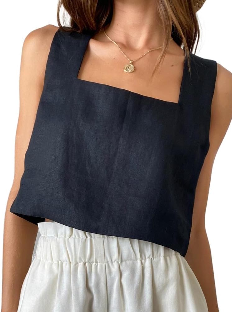 IDEALSANXUN Womens Linen Crop Tank Tops Cute Summer Sleeveless Cropped Cotton Linen Tops