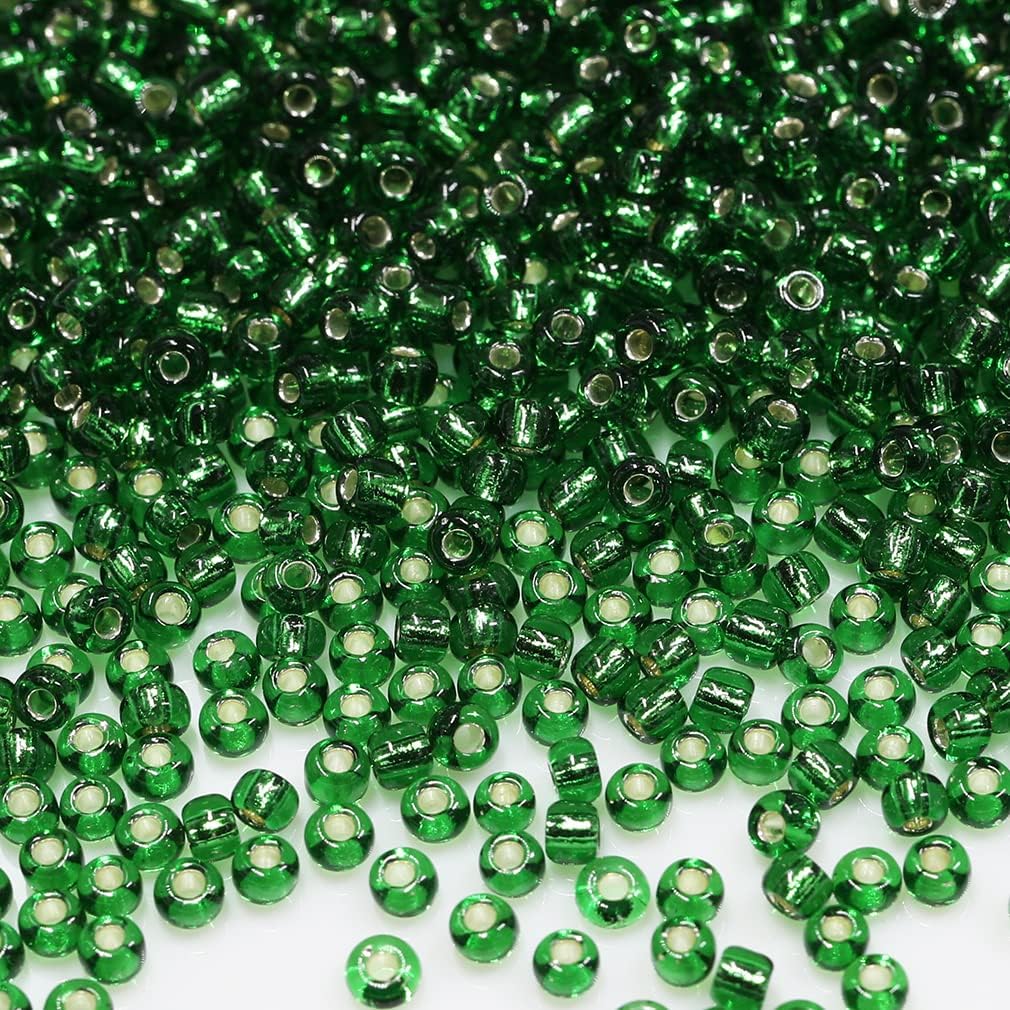 - Seed bead material is glass, which is high quality, durable and sturdy; Size 3mm Dark Green silver lined color seed beads.