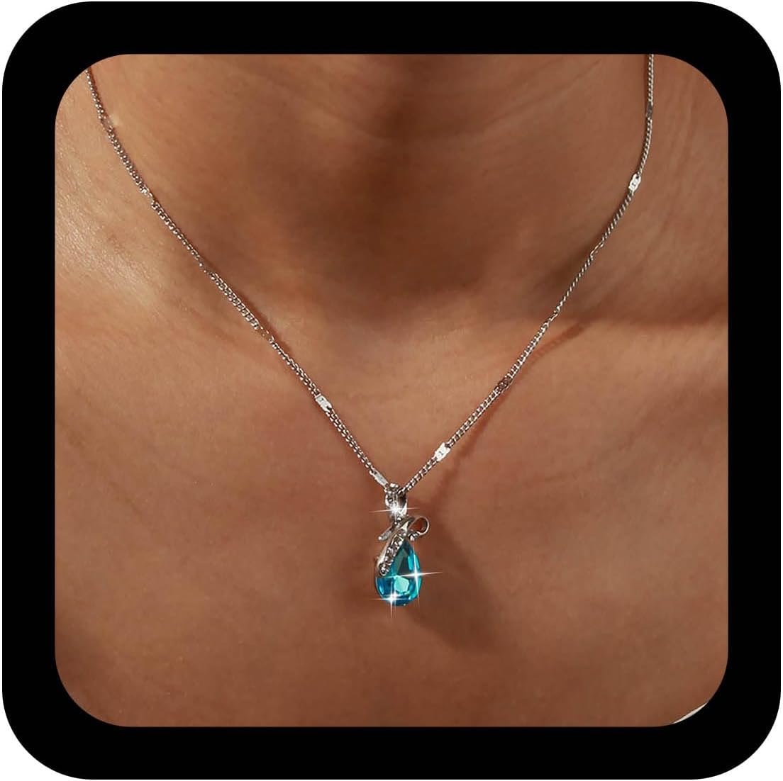 Boho Sapphire Crystal Teardrop Necklace Choker Wedding Blue Gemstone Rhinestone Pendant Necklace Minimalist CZ Waterdrop Infinity Thin Chain Necklaces Jewelry for Women