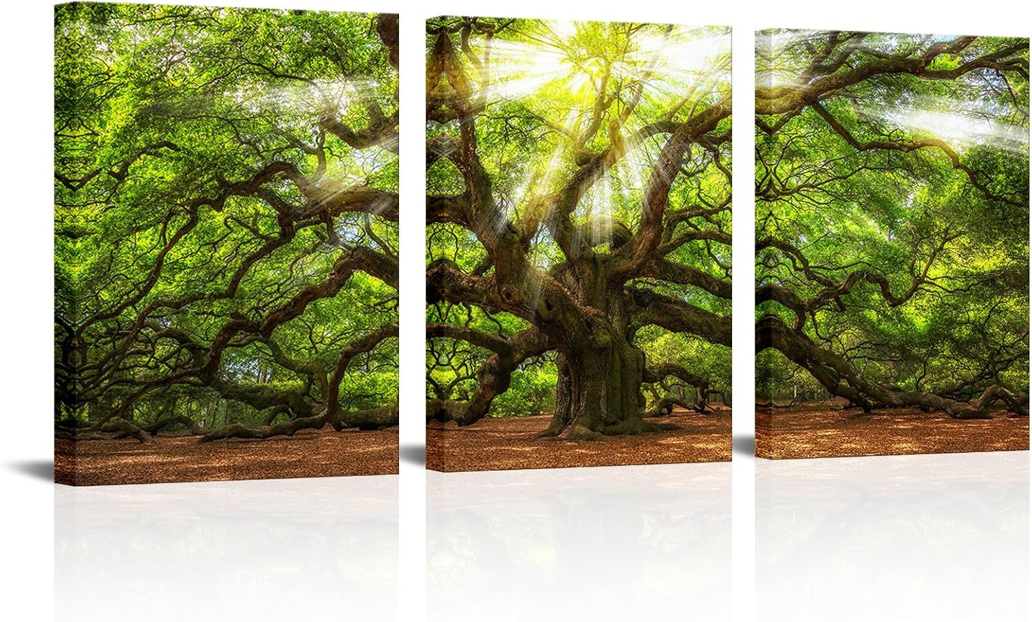 Conipit Angel Oak Tree Pictures Wall Art Green Oak Painting South Carolina Prints Framed and Stretched Natural Landscape Canvas 12''x16''x3